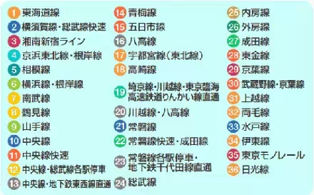 東京都內的JR路線,除了東海道新幹線屬於JR東海管轄外,其他皆屬於JR東日本管轄。JR線的電車均以不同的車身顏色作出區別。(本文由日本流行每日速報原創)